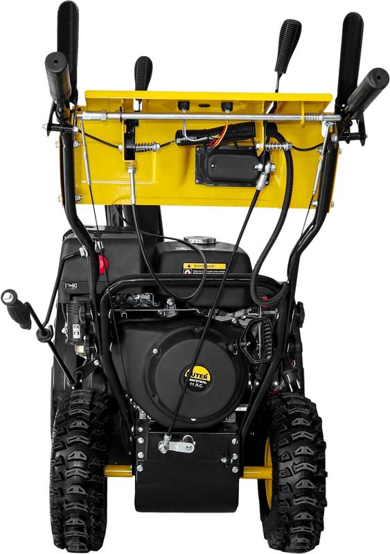 Прибор оснащён электростартером от сети 220В, что помогает вам не переживать о том, что аккумулятор разрядится после долгой работы на улице. Рукоятка способна регулировать направление выброса прямо на ходу. А яркая фара и подогрев ручек делает вашу работу комфортной при любом освещении и погоде.